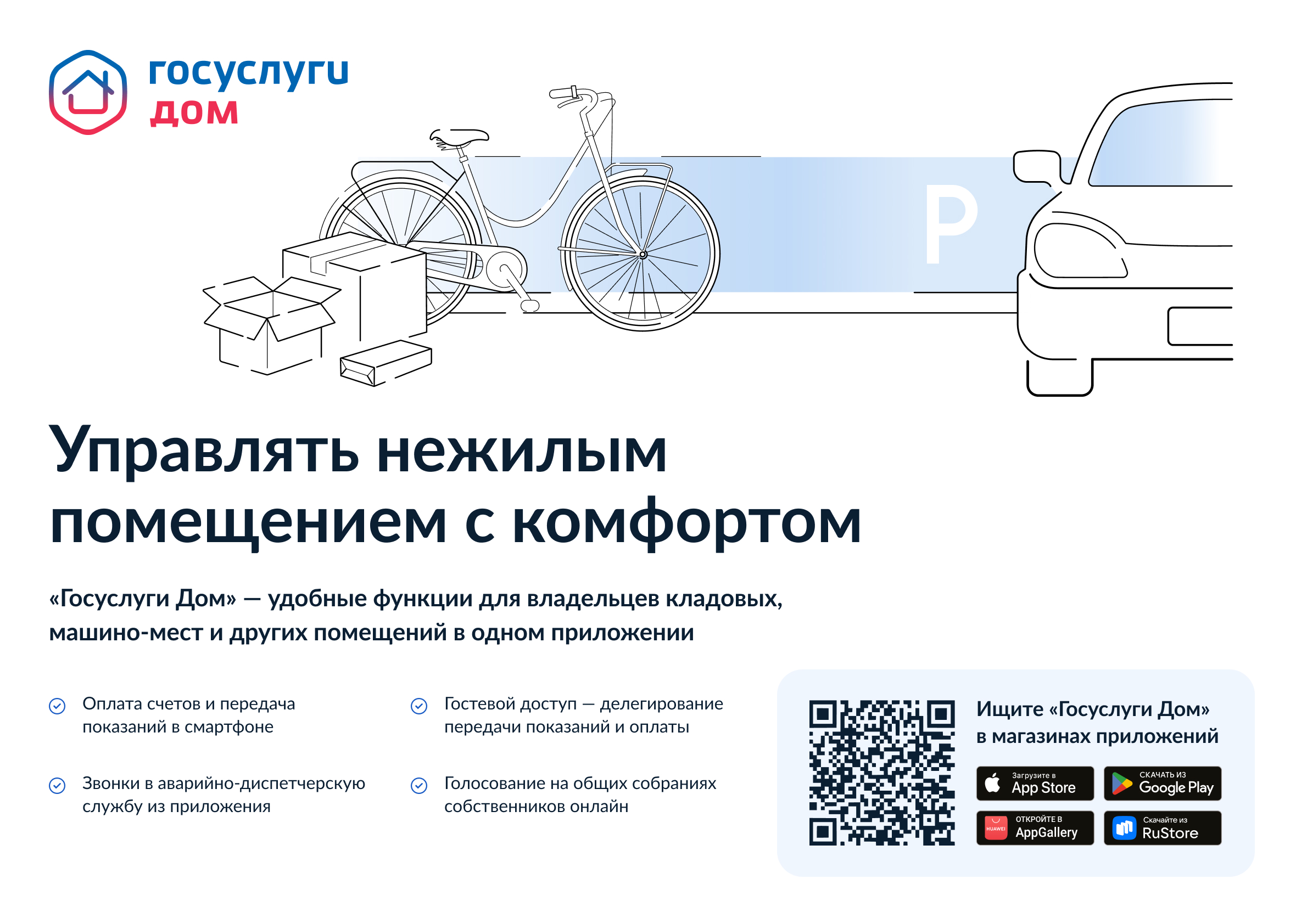 Минстроем России опубликован релиз о новом функционале для владельцев кладовых, машино-мест, и других нежилых помещений в одном приложении.